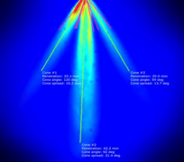 La tecnica è anche in grado di determinare l'angolo dello spray e dei suoi getti, i loro centroidi e, se lo strumento è opportunamente dimensionato, anche la velocità del fronte dello spray.